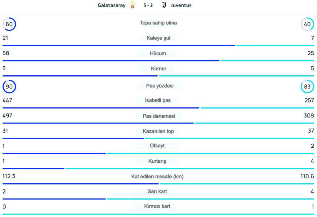 Galatasaray – Juventus maçı istatistikleri (17 Şubat 2026)